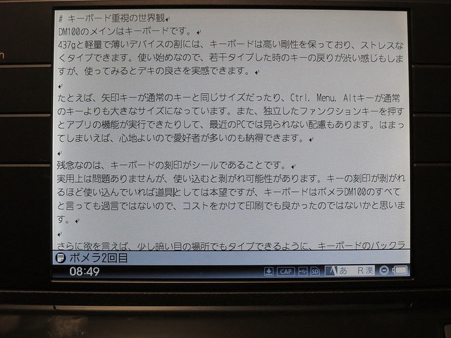 キーボードとディスプレイのデキは?:キングジム ポメラDM100レビュー