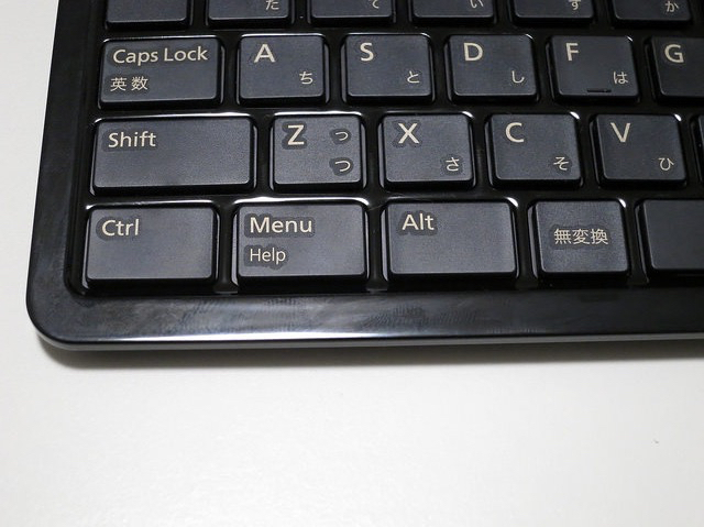 437gと軽量で薄いデバイスの割には高い剛性を保っており、ストレスなくタイプできます。使い始めなので、若干タイプした時のキーの戻りが渋い感じもしますが、矢印キーが通常のキーと同じサイズだったり、Ctrl, Menu, Altキーが通常のキーよりも大きなサイズになっています。また、独立したファンクションキーを押すとアプリの機能が実行できたりして、最近のPCでは見られない配慮もありデキの良さを実感できます。
